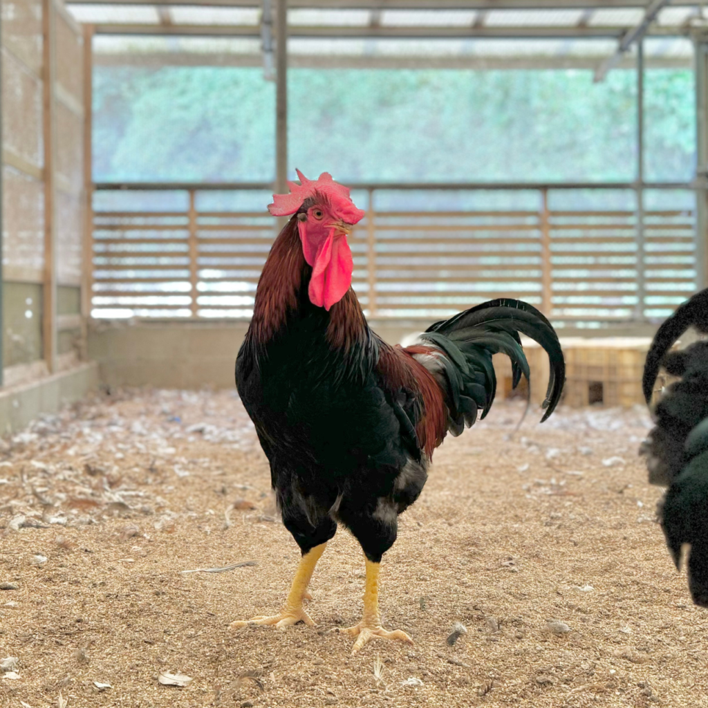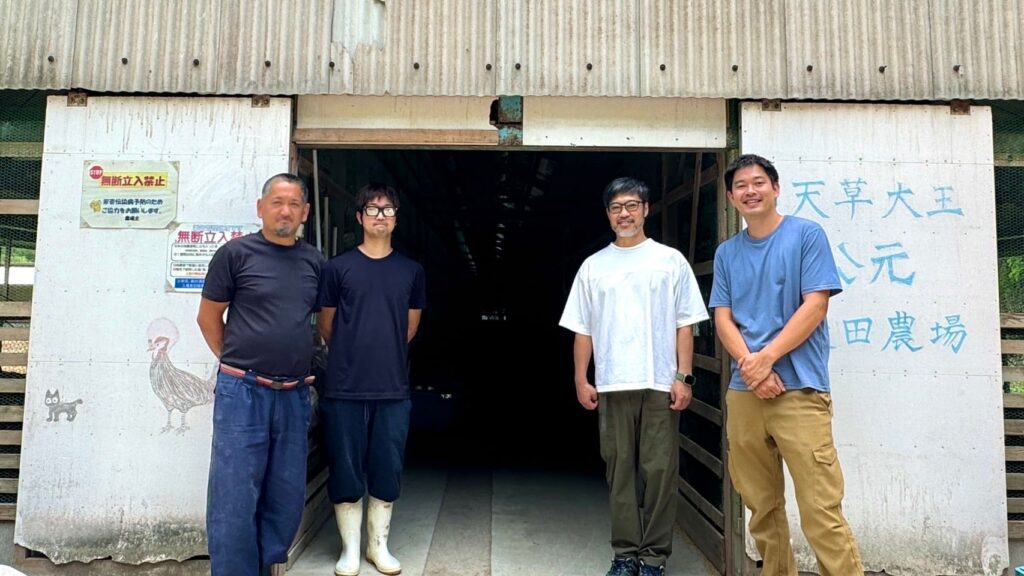 鶏舎を見学させていただいたのですが、虫の声と鳥の声と天草大王の声しか聞こえないほどの自然豊かな山奥にあって、鶏舎特有の嫌な匂いが全くしない清潔な鶏舎でした。